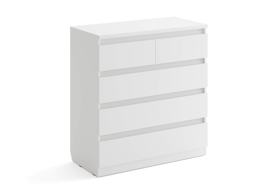 Aksel - комод без лишнего. Лаконичная скандинавская форма, четыре варианта цвета и скос под плинтус позволяют вписать его в любую комнату: спальню, гостиную, детскую или домашний кабинет и встать вплотную к стене без зазора. Надёжные шариковые направляющие обеспечивают плавное и лёгкое выдвижение ящиков без рывков и перекосов.